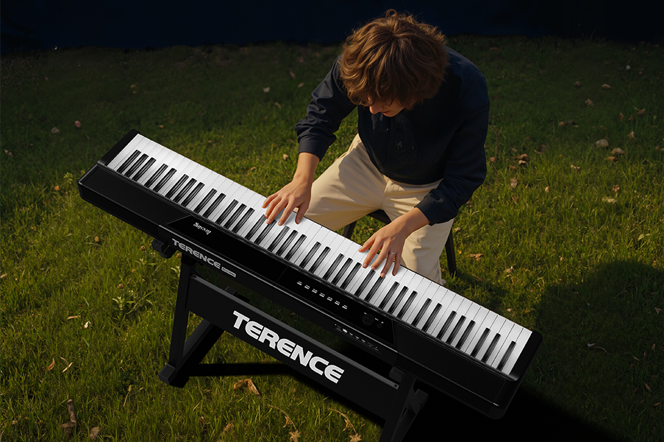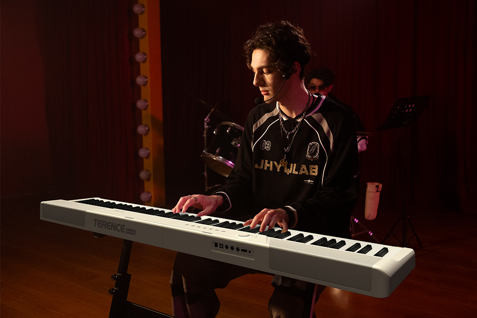 仿象牙質感的鋼琴鍵盤,更接近傳統鋼琴的觸感,模擬鋼琴的下鍵深度、更高靈敏度的鍵盤反饋,彈奏時能表現出細致的強與弱,更接近真實鋼琴演奏感;每一次力度調整,都能清晰感知旋律變化。
