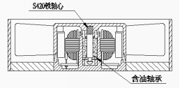 風(fēng)扇軸承采用1pcs含油軸承,轉(zhuǎn)子軸心選用SUS420材質(zhì),軸心與軸承為線接觸,滑動(dòng)摩擦;對(duì)于含油軸承風(fēng)扇,軸承含浸油品和外加潤(rùn)滑油品的選擇很重要,首要條件為兩者要有機(jī)相結(jié)合及兼溶,這樣才能起到最佳的初期潤(rùn)滑效果,否則油品易產(chǎn)生變質(zhì),積碳等異。
